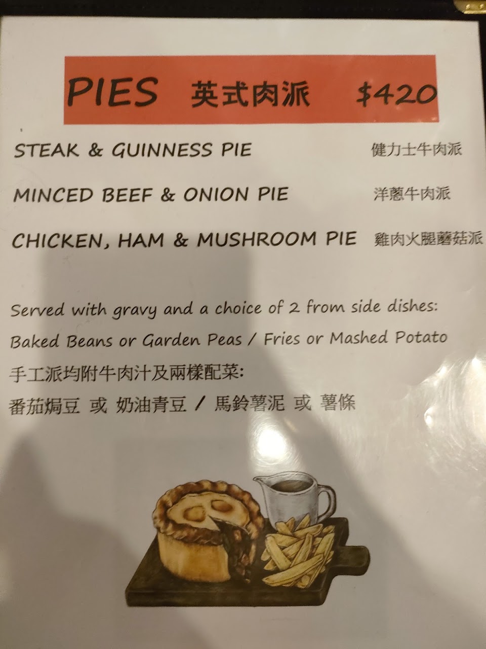正宗英國食物果真慘不忍睹,肉派簡直是產業廢棄物等級,只有罐頭豆子和馬鈴薯沙拉還可以,建議點漢堡義大利麵