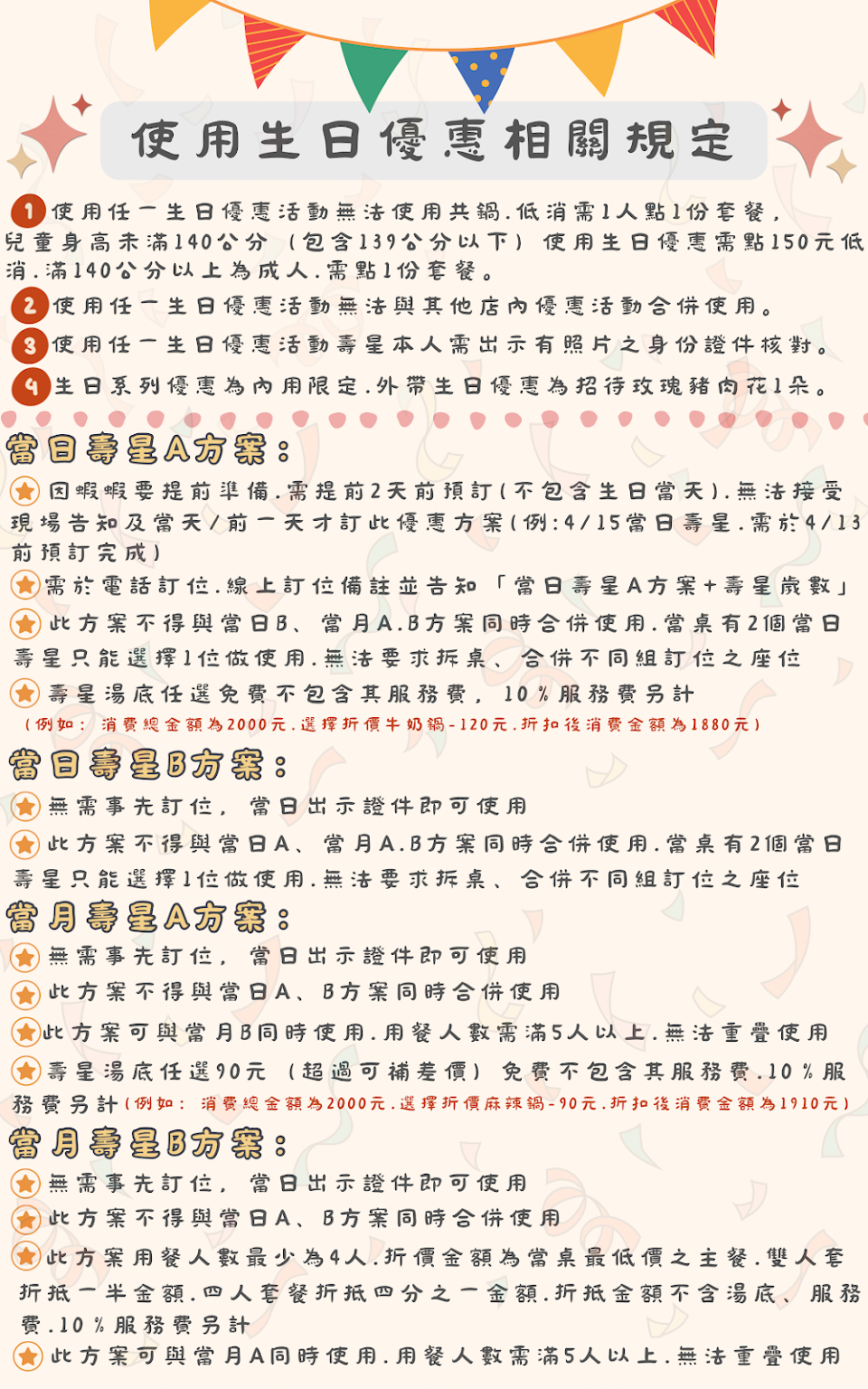 菜盤可以換肉、附餐可以換肉、生日當天、當週、當月送肉,點二份套餐送肉⋯哈哈!