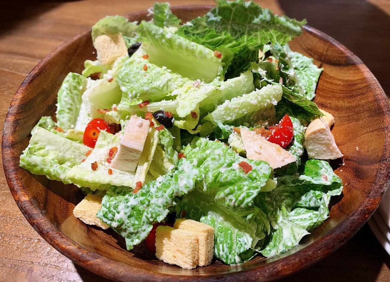凱薩雞肉沙拉份量超級多,大概3~4人份的,兩人會超級飽,而且裡頭還有麵包丁