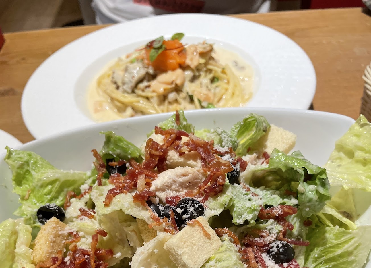 義大利麵份量多口味棒、料也給的很多、價格又實惠,燉飯來說份量比較少,但口味也不錯,沙拉份量大又好吃,附贈的甜點也很有水準,生意非常好一定要定位!