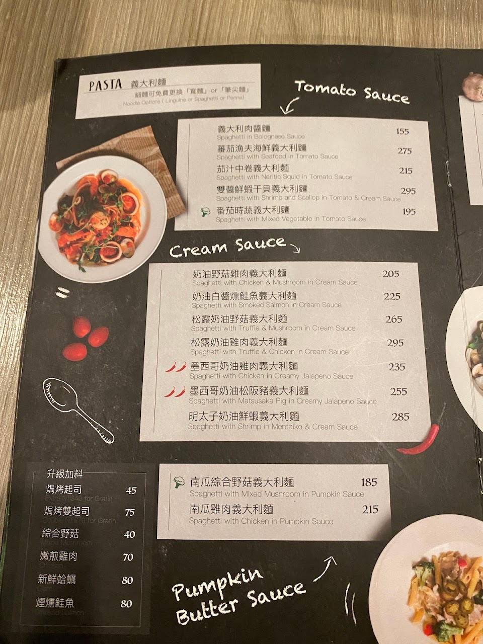 南瓜蔬菜義大利麵加麵$185