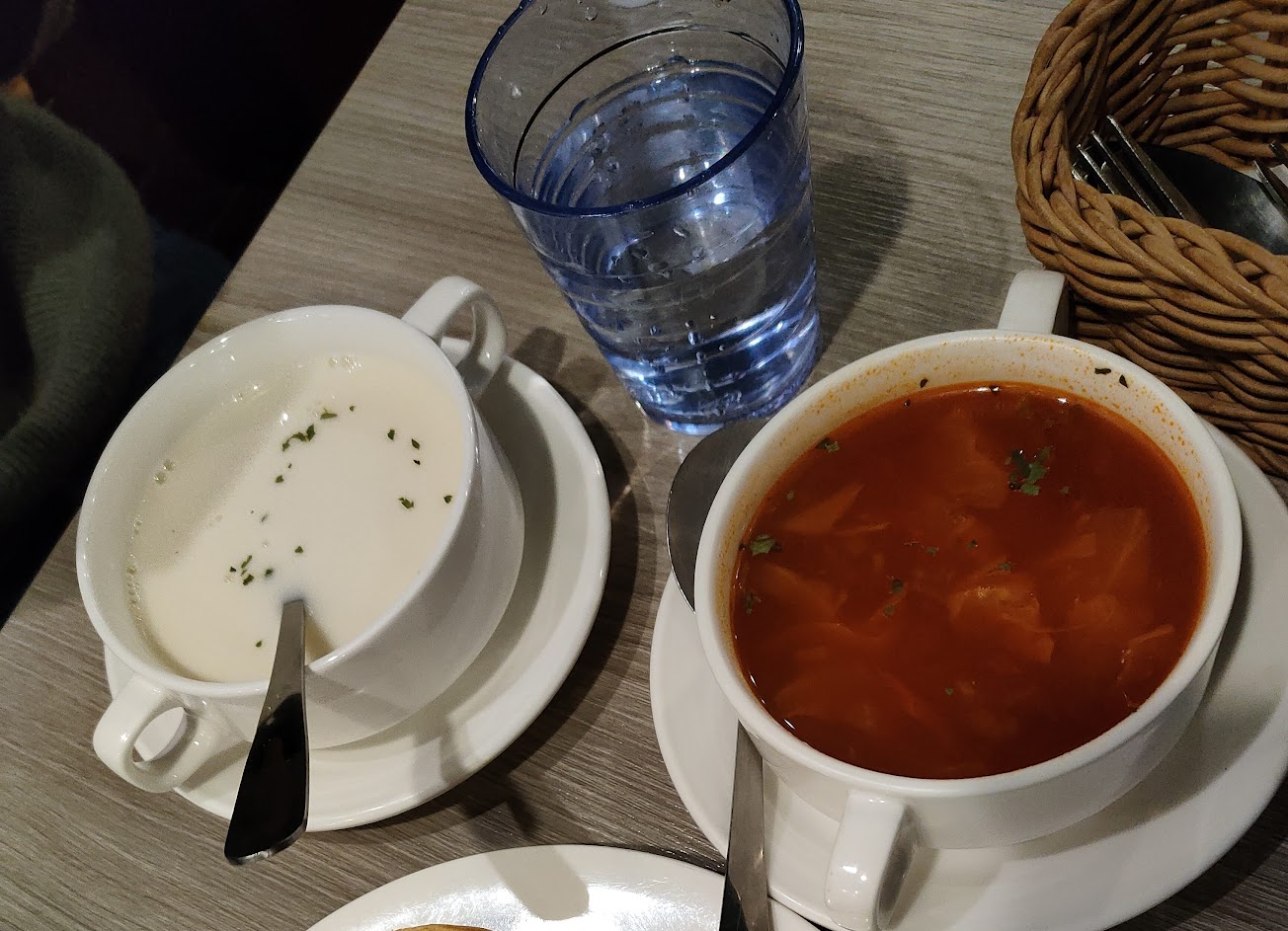 這間店的套餐有各種不同價位供選擇,但是我好像每次都是選麵包、湯、紅茶,香蒜麵包很香,而且剛烤好那種熱熱脆脆的口感搭配濃郁的湯品,真的超讚!紅茶也很可以,不會太甜!