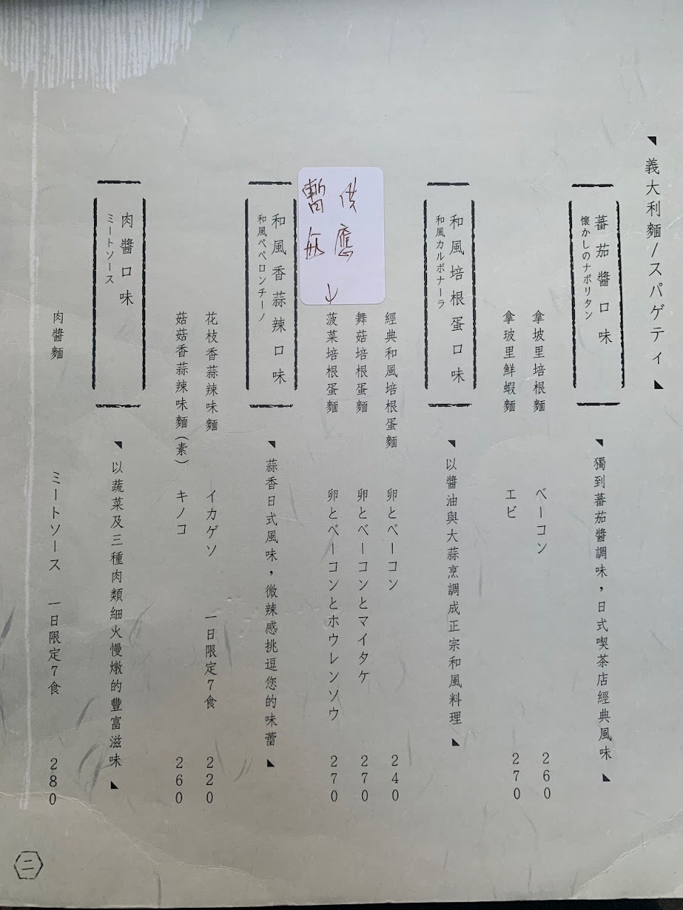 麵炒得不錯,日式風格的義大利麵,點餐時可說明麵加量對男性或食量大是福音