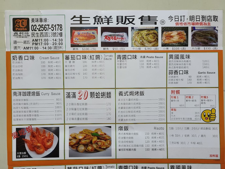 2024最新在地推薦餐廳的菜單_義利坊現炒義大利麵的菜單、圖片