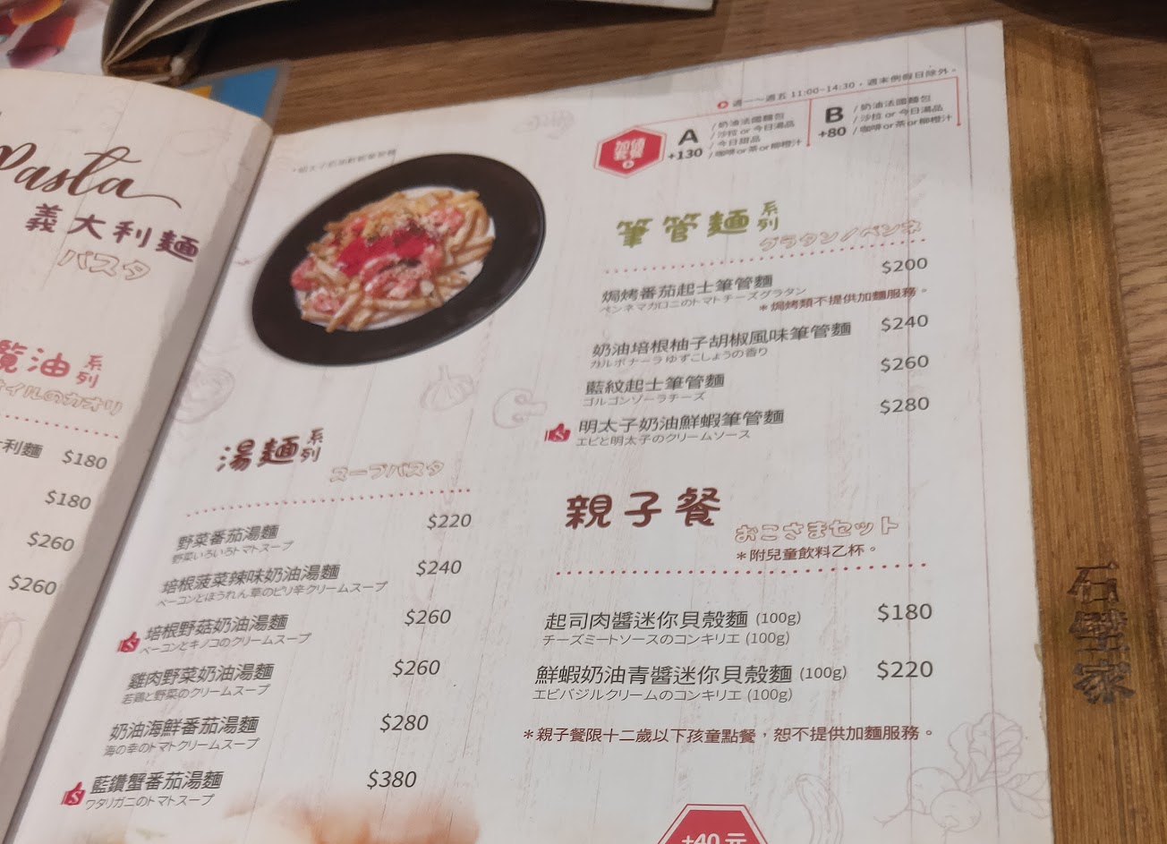 麵條軟硬適中,義大利麵口味不錯,加麵加40。假日只能現場排位不能預約,用餐環境好,炸物、濃湯一般