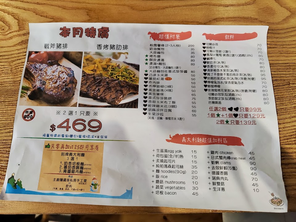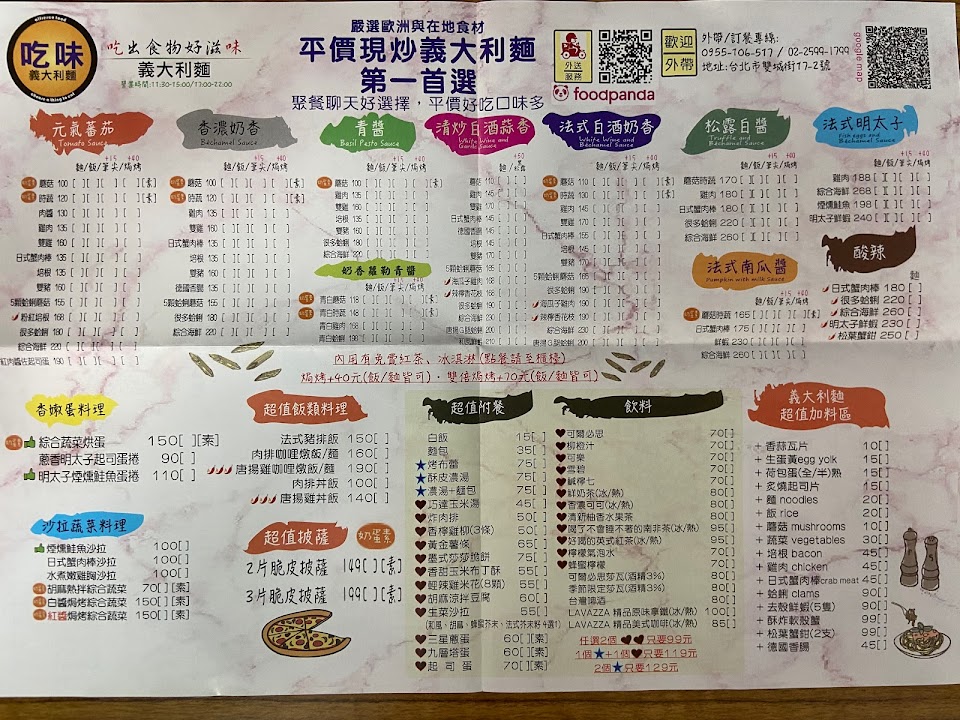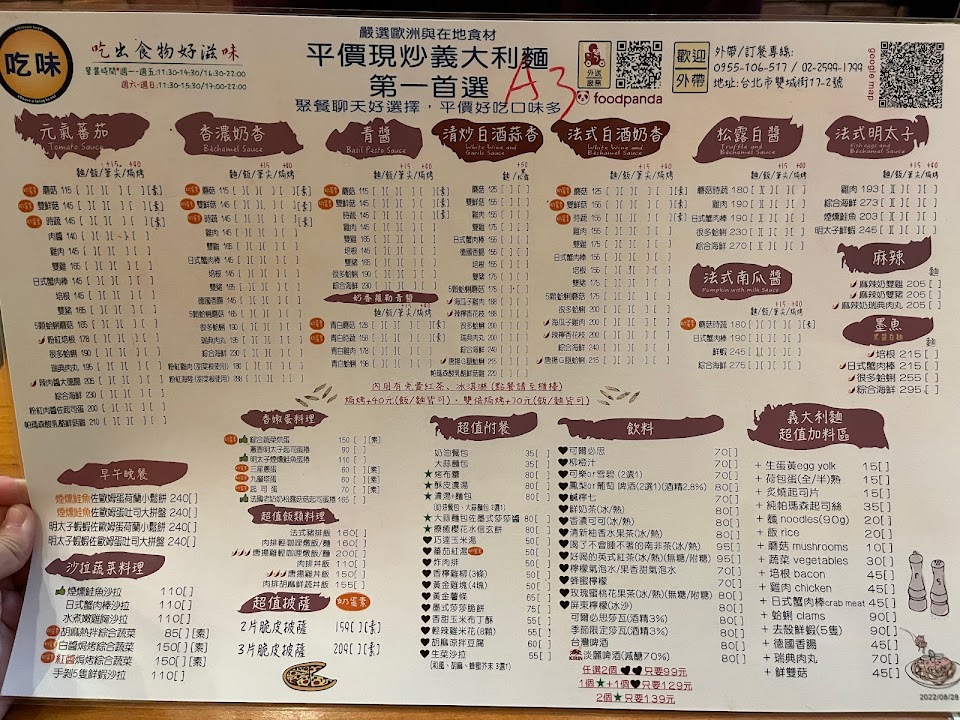 2024最新在地推薦餐廳的菜單_露天義大利麵晴光總店(吃味餐廳)的菜單、圖片