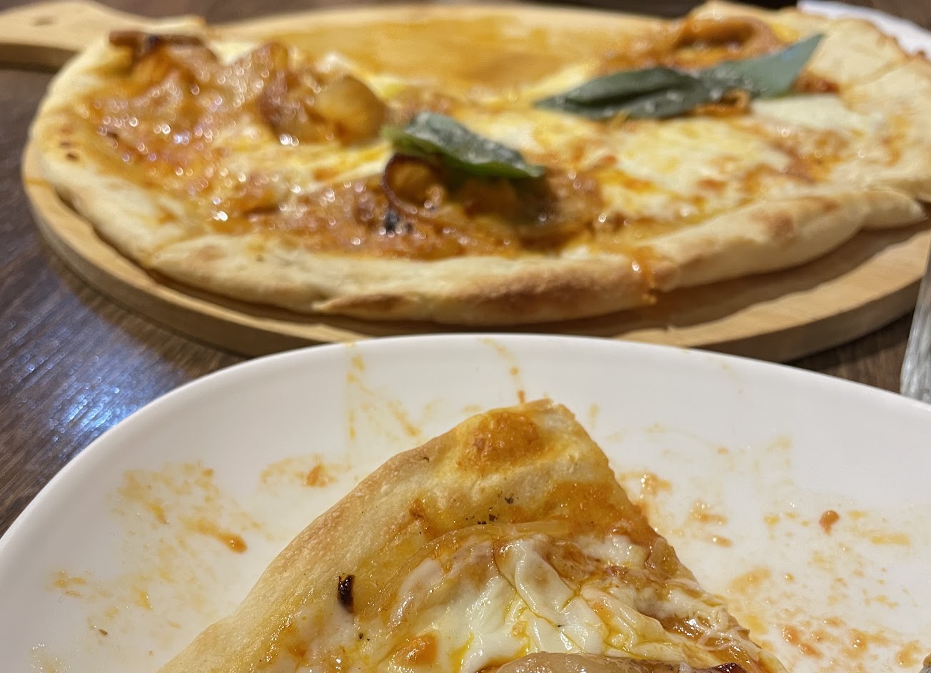 松露野菇披薩:起司濃郁,松露醬份量多,聽說是手工的餅皮脆且Q。而且整體份量非常大氣。
