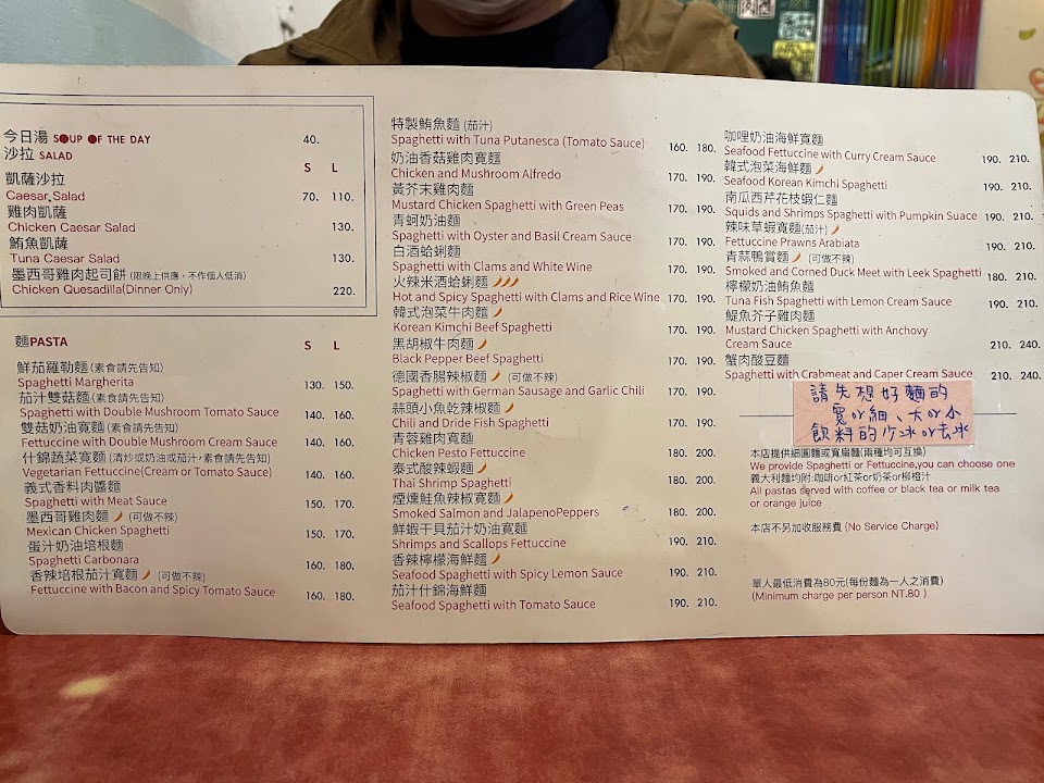 CP值高的義大利麵,價位從110~200初,