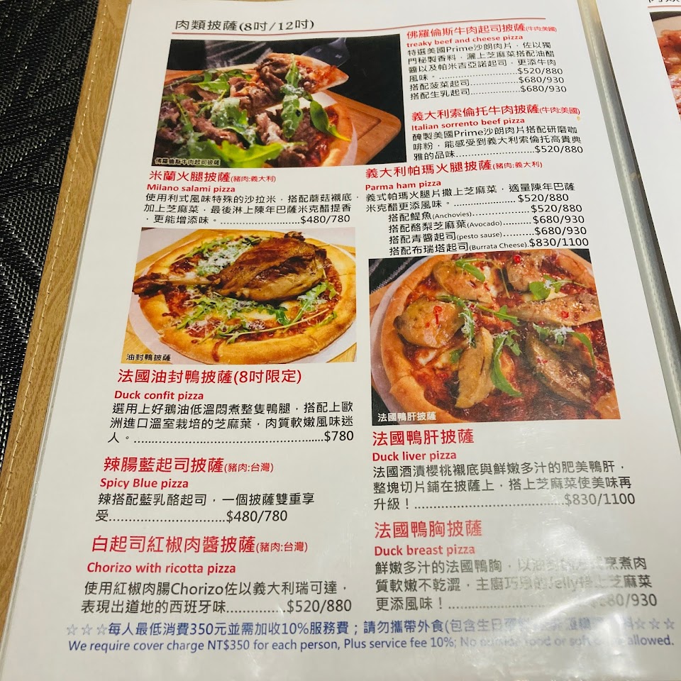 沒有華麗的裝潢 卻又道地的做法 品項非常多 可以請服務人員介紹 他們都很專業 每樣點選都非常有特色 披薩真的恨自己沒有容量可以再裝 酒可以自己帶 一個人洗杯費100 下次還會再來的選擇