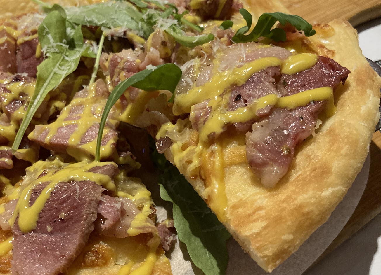 薩尼雅海灣披薩——第一次吃到將比目魚鰭肉炙燒後當成披薩主角的,非常驚艷,比目魚入口即化很油很讚。餅皮的部分最後的口感有種千層的感覺,好神秘,是目前吃過數一數二猛的餅皮❤️!