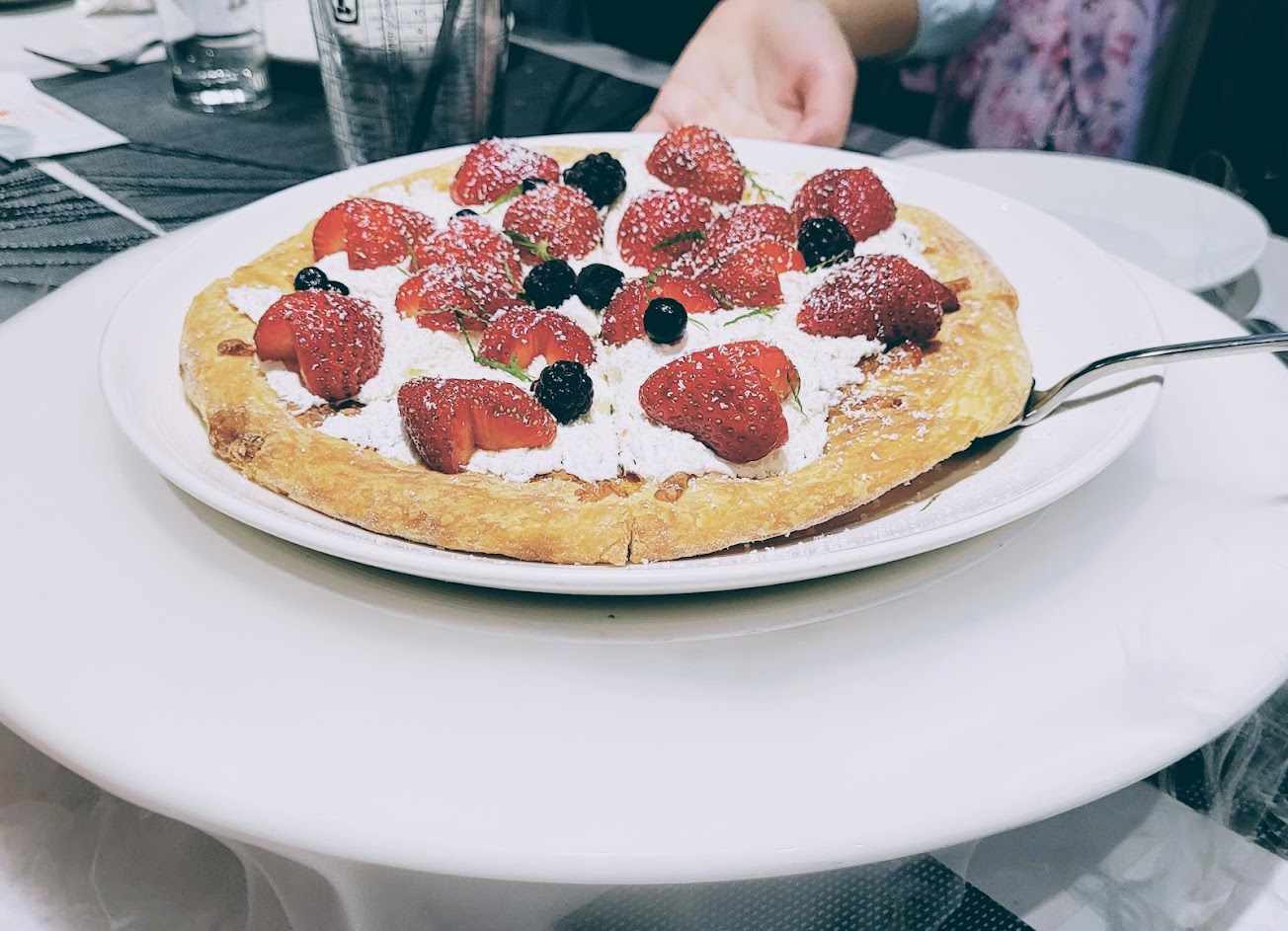 但耳聞且期待已久的甜點pizza卻每一口都是苦的……