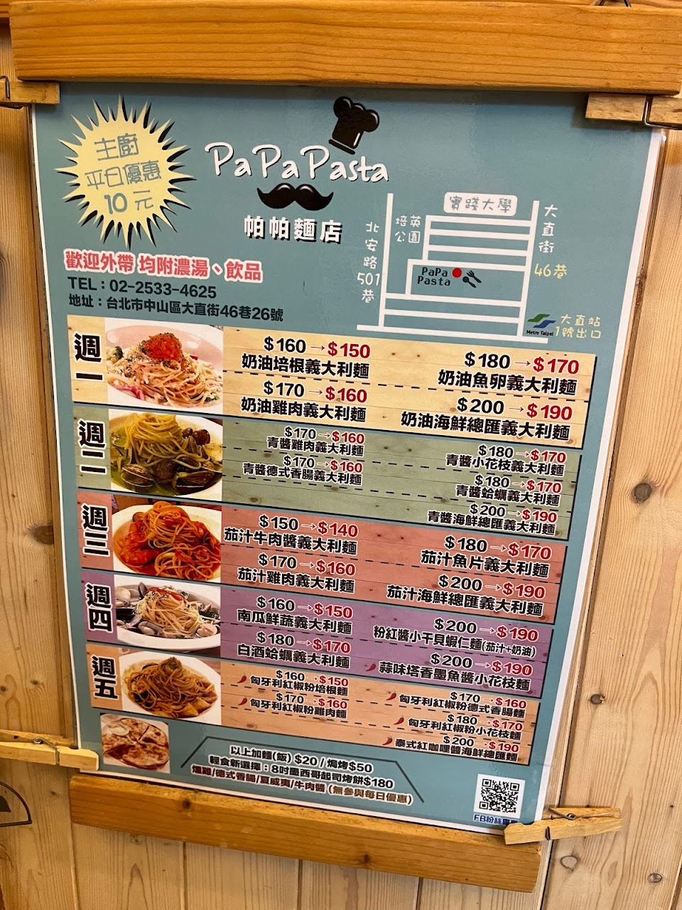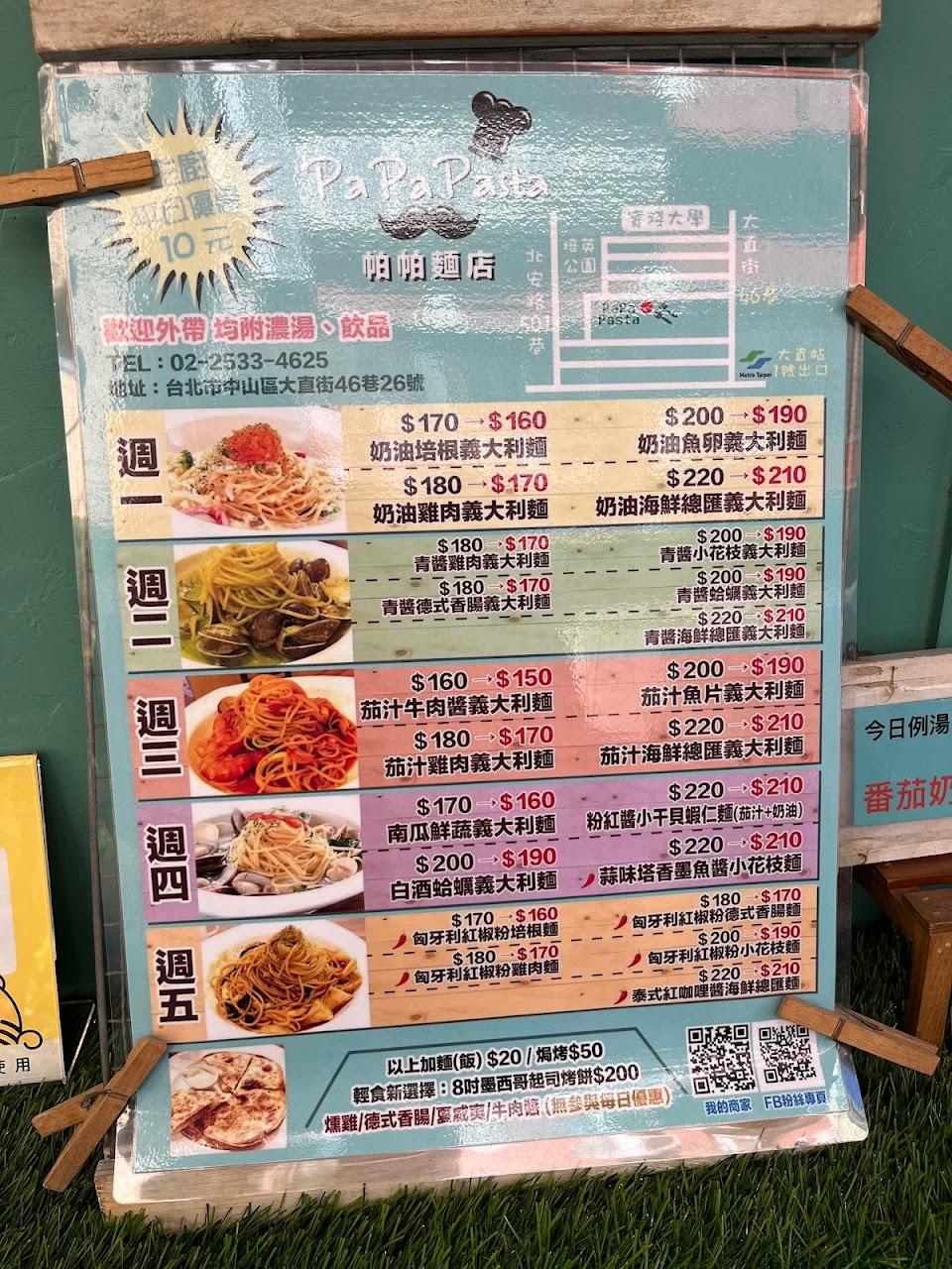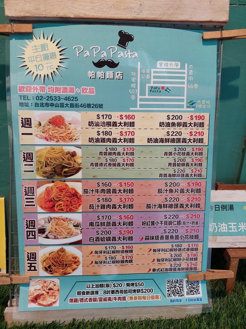 2024最新在地推薦餐廳的菜單_PaPaPasta帕帕麵店「台北大直.別無分店」的菜單、圖片