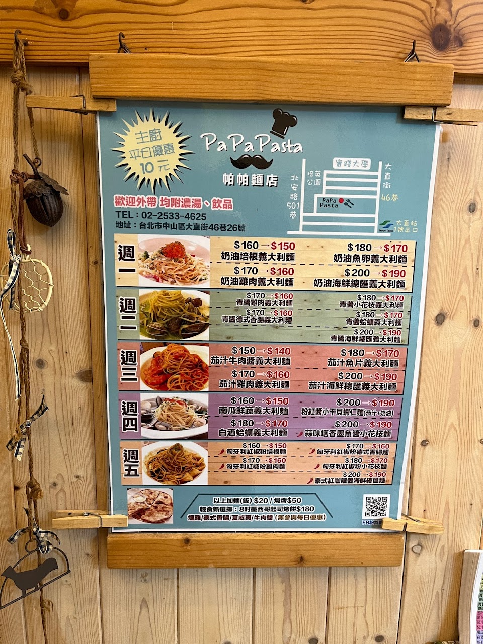 2024最新在地推薦餐廳的菜單_PaPaPasta帕帕麵店「台北大直.別無分店」的菜單、圖片