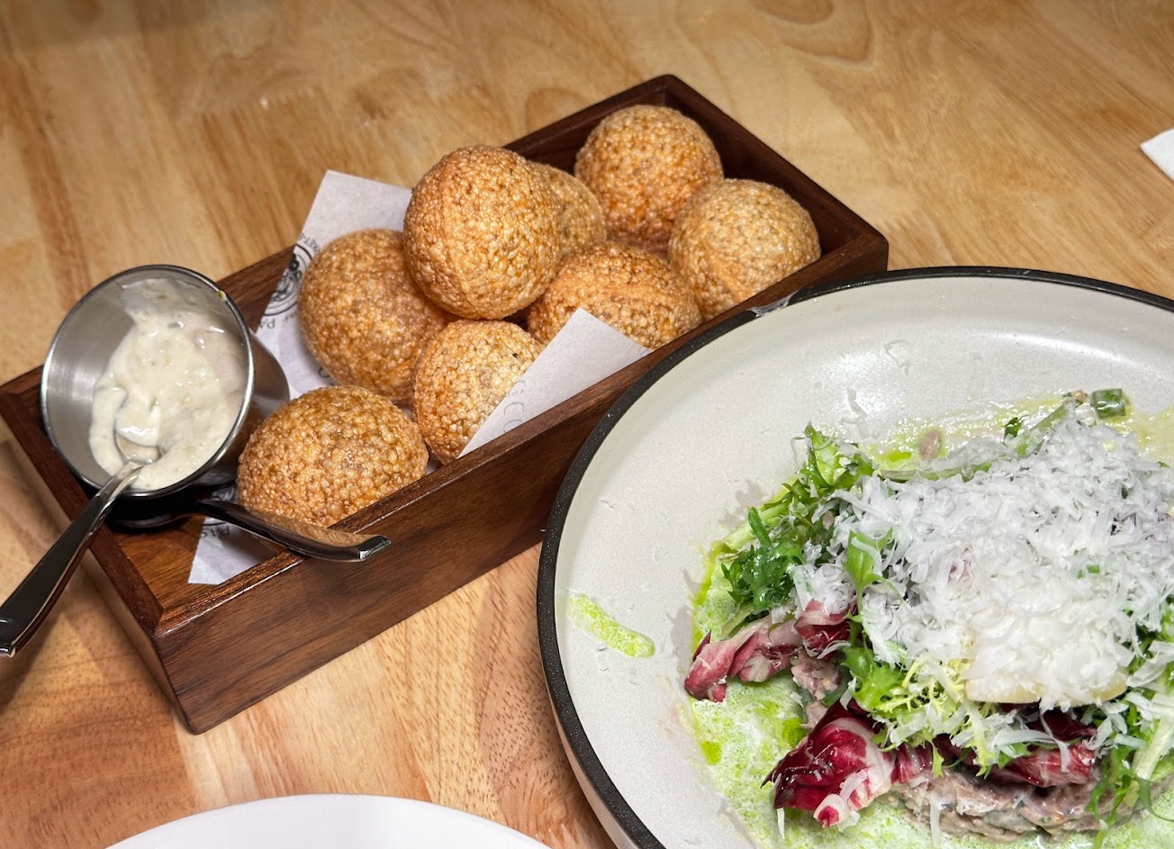 義大利麵品質穩定好吃,生牛肉塔塔搭配球狀脆餅,好吃又有趣的體驗