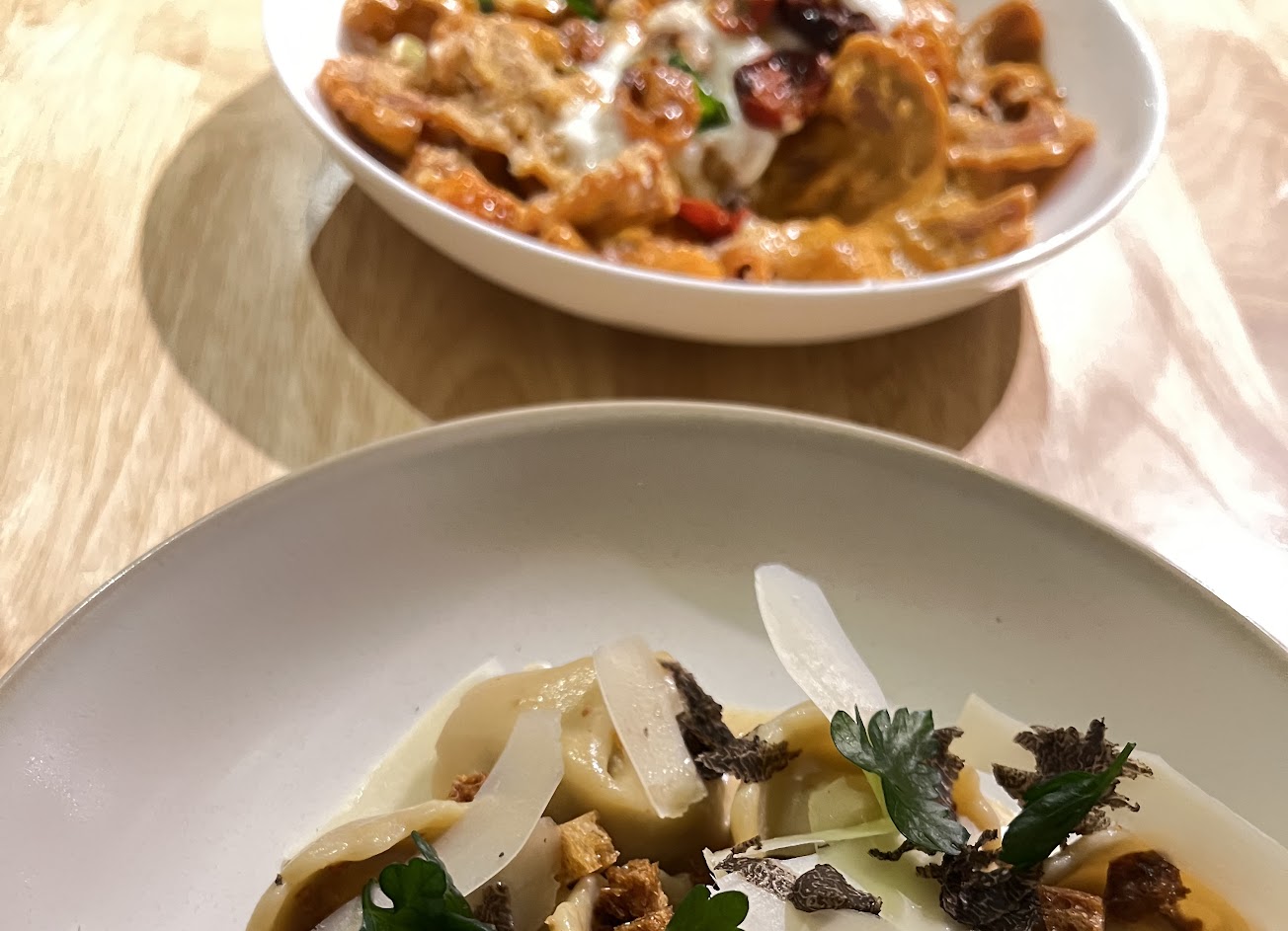每一樣都水準之上,當然口味覺得跟歐洲當地較接近,調味較重(尤其是起司味),因老闆是旅美回國開店感覺也有融合一些美式的元素。 牛頰的部分有點中西合璧的組合,所以有點鹹甜的成分搭配珍珠麵,蠻特別的。 個人最喜歡黑松露帽餃,起司醬汁濃郁搭配黑松露很有記憶點,但也能理解應該不是很多人的菜? 蜂巢麵的口感很特別,今天蠻幸運麵體煮的剛好,不會太硬或軟。