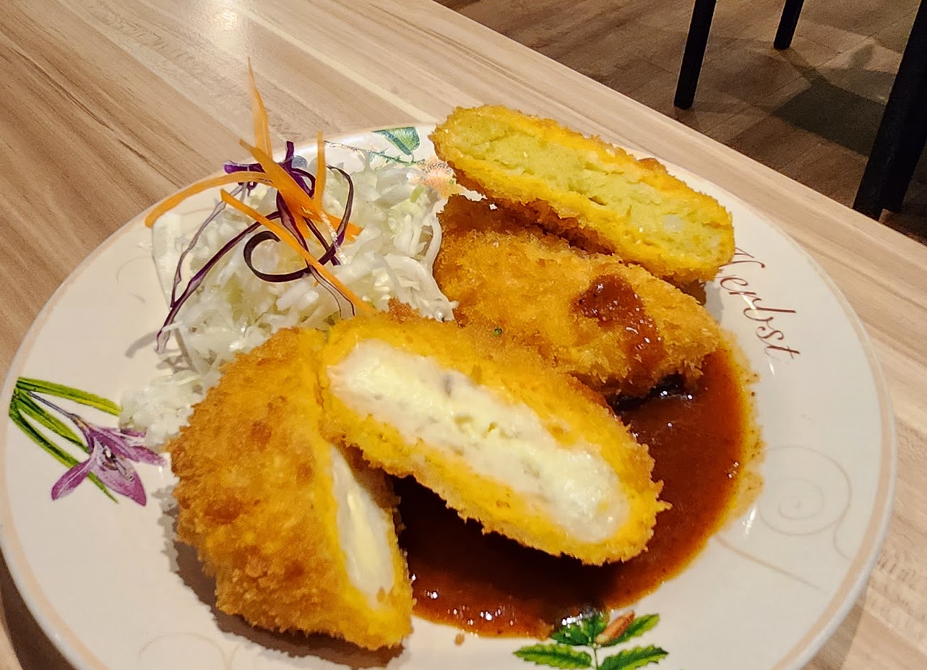 可樂餅剛好點了一個咖哩一個起司,超厚超好吃,沒有奇怪的洋蔥味或硬要蔬菜味,愛。