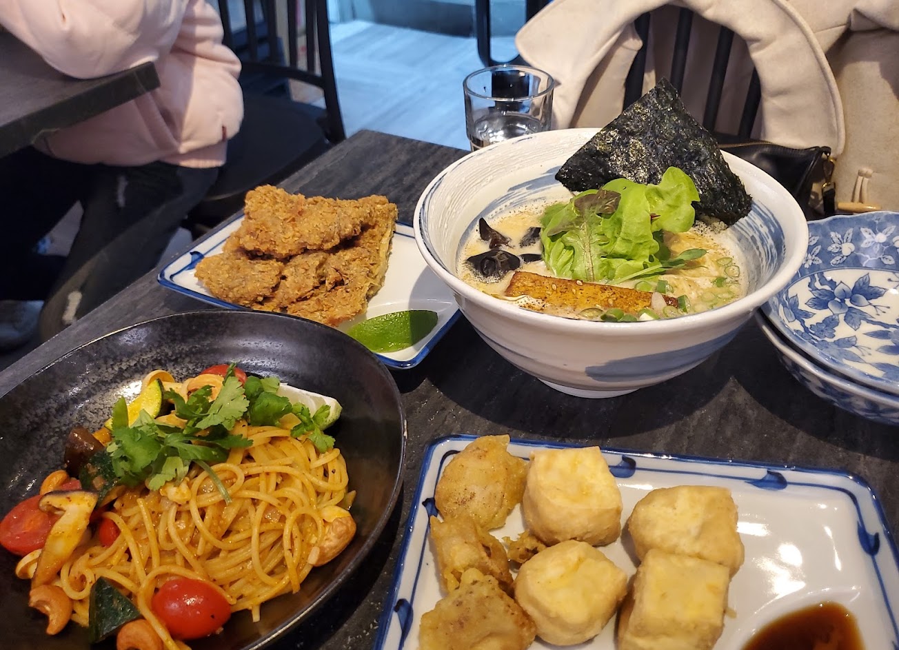 有麵子拉麵湯頭非常美味,麵條是我喜歡的細拉麵,搭配起來簡直天生絕配。野菇松露義大利麵用料很實在,不過若能加點植物奶去炒煮就不會顯得口感稍乾。