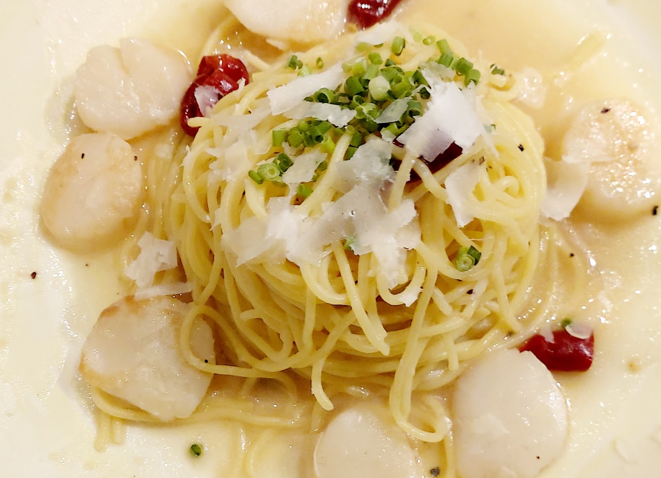 主食很喜歡他們的細香蔥干貝麵,配上一個小披薩