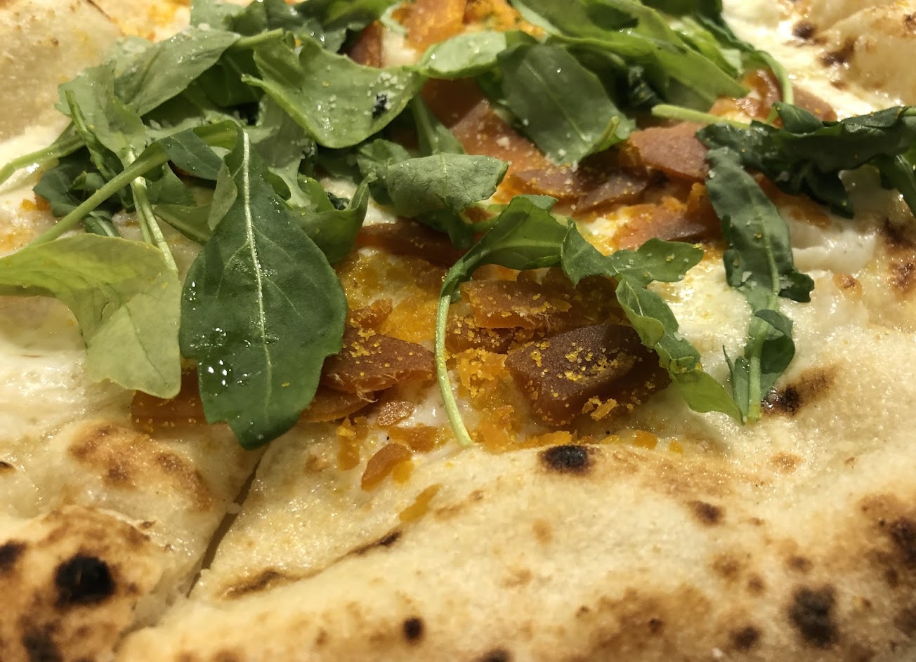 比薩的口感外酥脆內軟韌,嚼勁十足,又因為窯烤的時間很短,上面的食材可以吃到很新鮮的味道