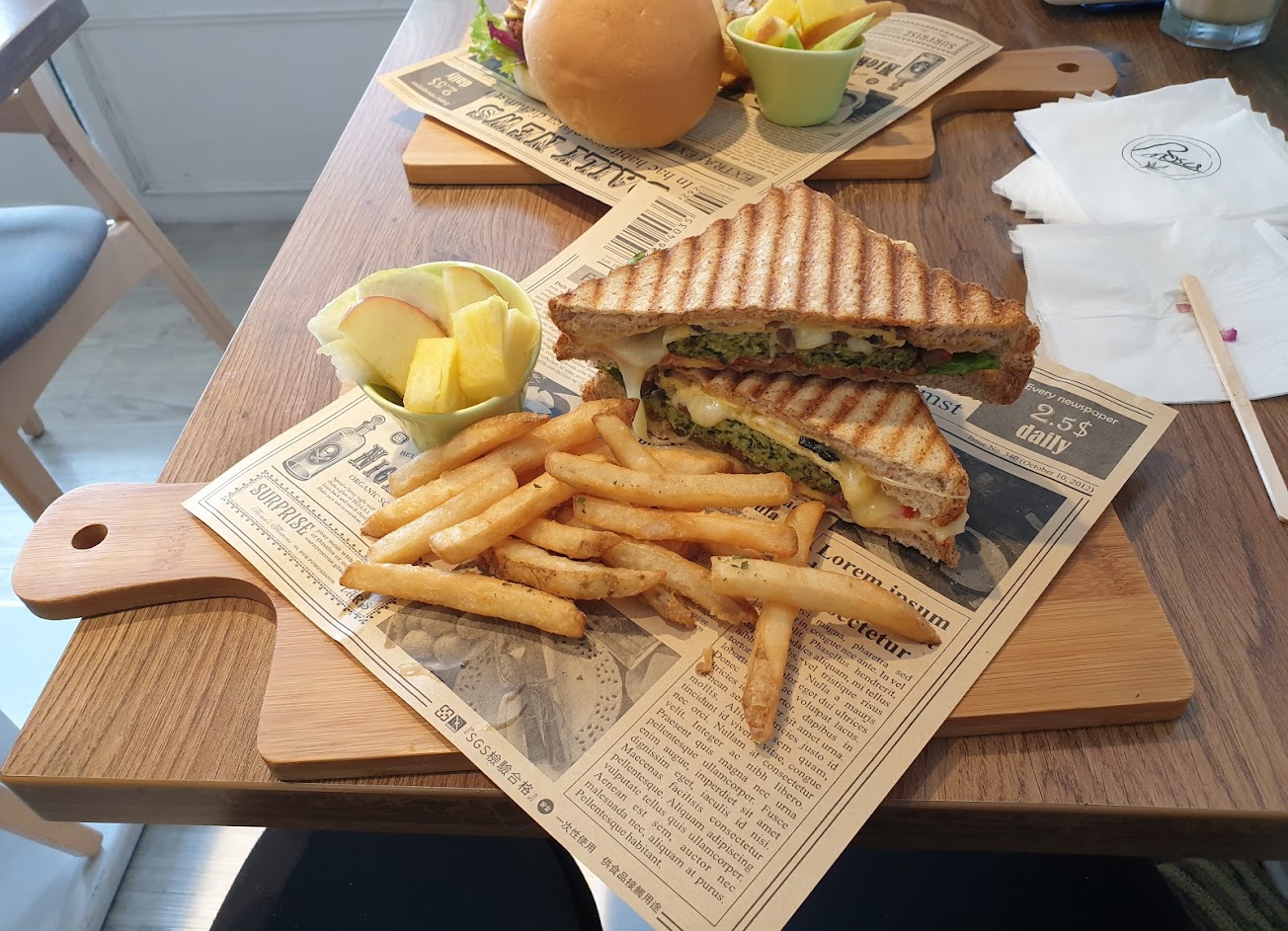 壞境寬敞舒服 但是食物口味調味過鹹,松露義大利麵較台式做法,松露好像額外分離的口味 大部分吃到的只有鹹,黃金泡菜豆腐捲餅看起來很可口,但是吃不到蔬菜的層次感和甜味,越吃越膩,炸薯塊還不錯 但都略鹹,南瓜濃湯沒有南瓜的甜味,完全也被鹽巴搶味!有點失望,因為是難得以素食為主的餐廳!