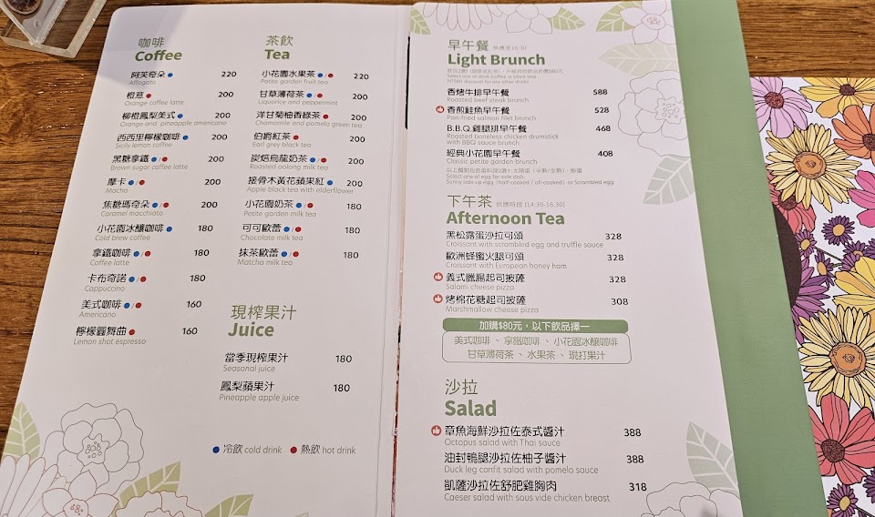 除了服務人員很趕著點餐五分鍾內來了兩次兩個不同人詢問傻眼,結果過五分鐘告知其中一個服務員可以點了,反而等了好一陣子沒來,結果又等來另一位服務人員又來問一次要點餐了嗎?哈哈哈哈哈三條線,烏龍奶茶甜了點,鮭魚有點老,環境很舒服豬腳好吃,不過排餐的菜量有點少,也沒生菜對於愛吃菜的可以點早午餐,要不配菜只有一個甜椒一個玉米一個節瓜一坨馬鈴薯泥纖維量很低哈,就這價位沒甜點沒足量的菜就cp值來說有點低,不過氛圍是真的不錯,喝個飲料吃早午餐聊天還不錯排餐就嘿嘿路過就好。