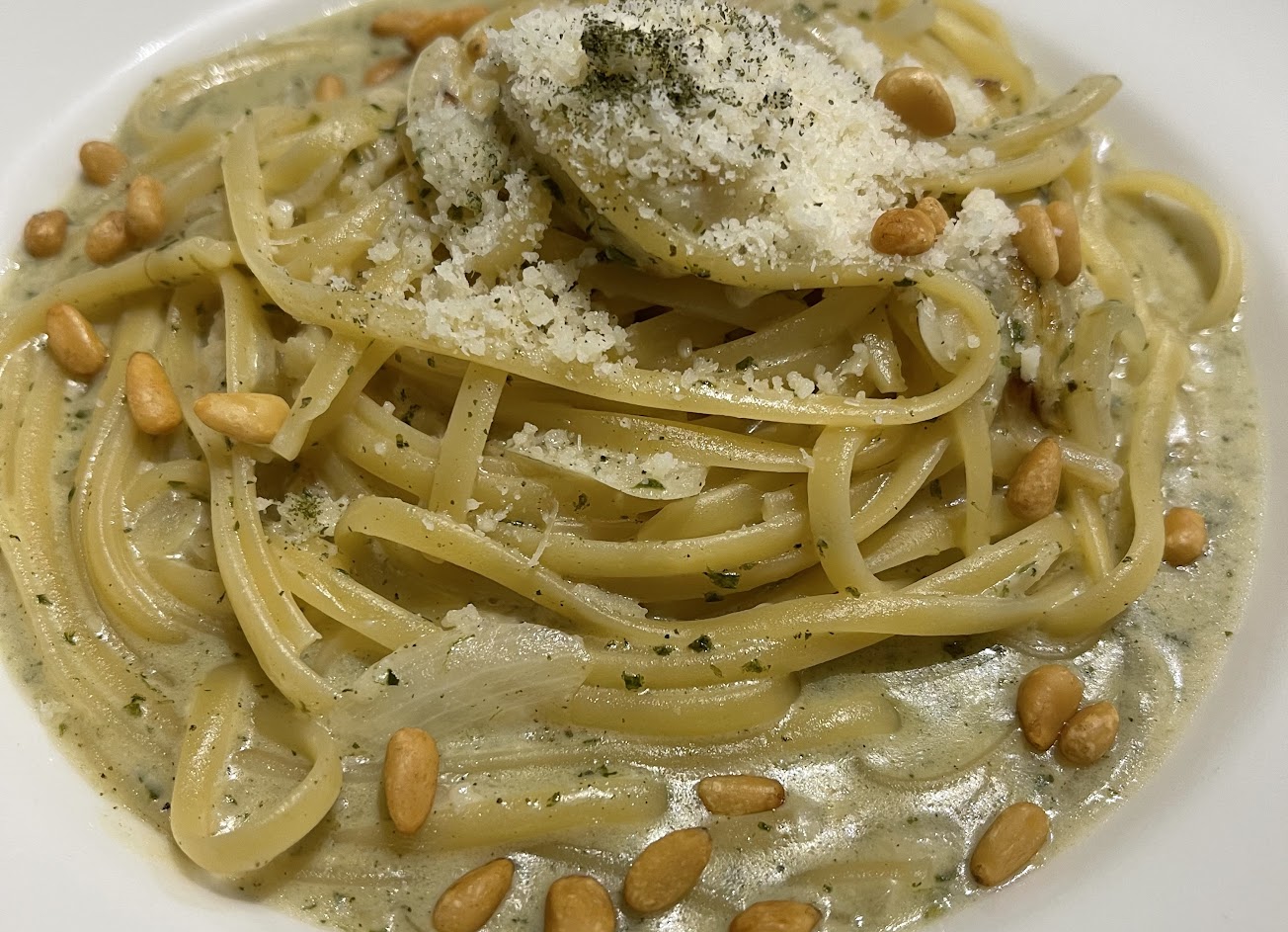 奶油青醬松子麵很好吃~~