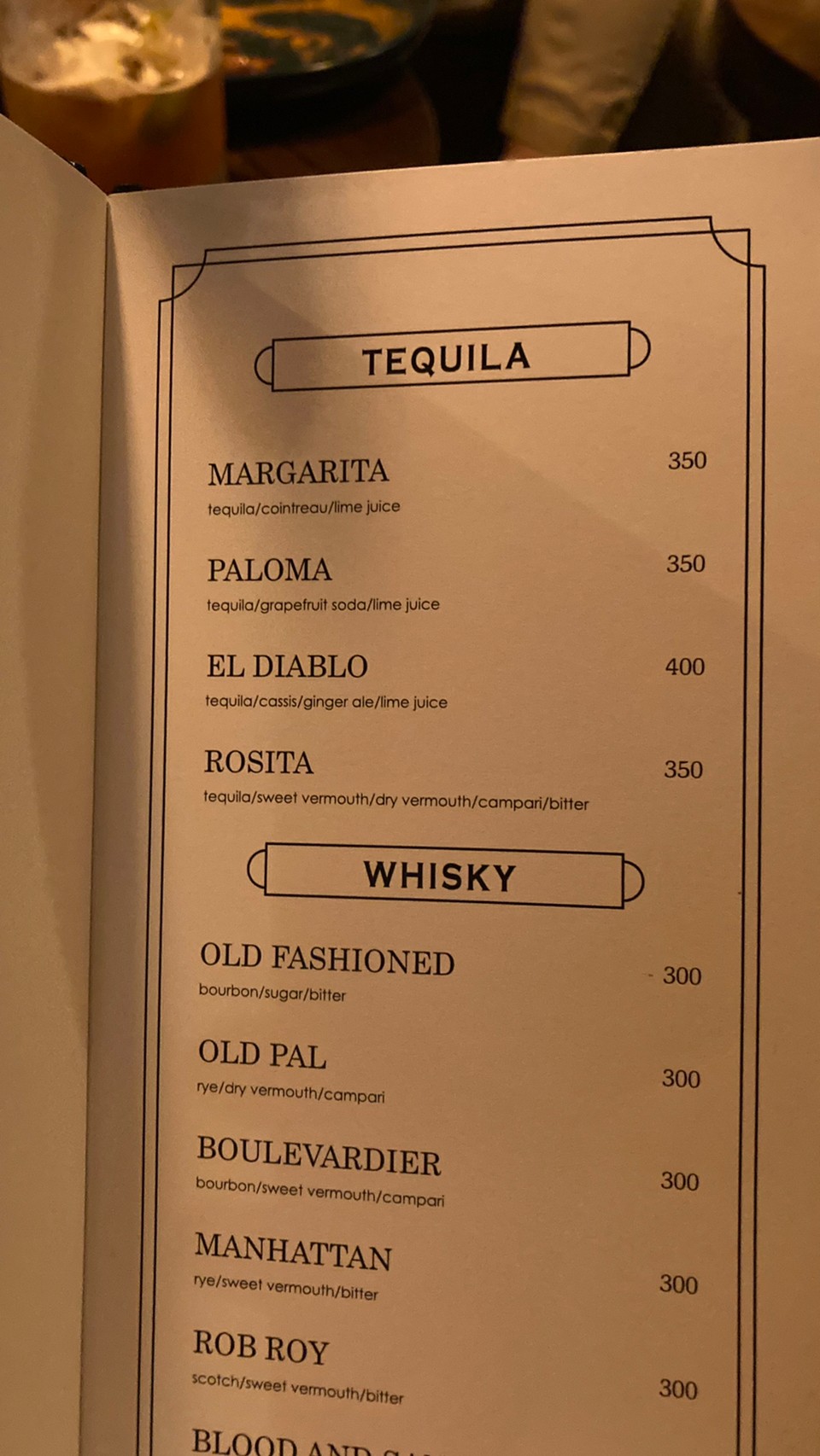 酒單豐富,價格合理,收一成服務費,但是低消只需$300,且開到凌晨三點,適合夜貓族。調酒視覺上不會太花俏,但味覺上口感平衡,會再回訪試試其他調酒。