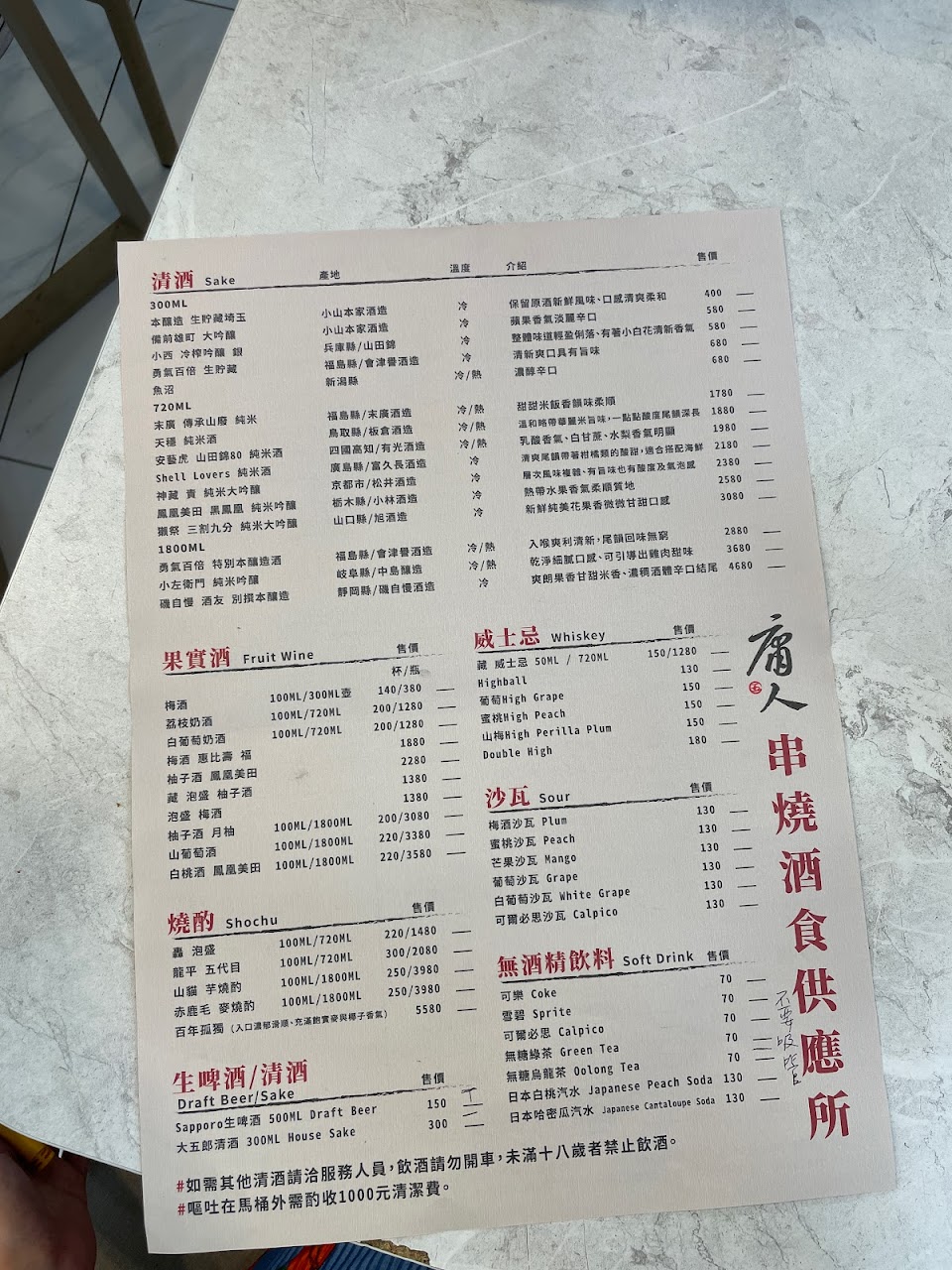 座位不擁擠很舒服的空間,食物正常發揮,很適合下酒。自備酒類開瓶費不貴