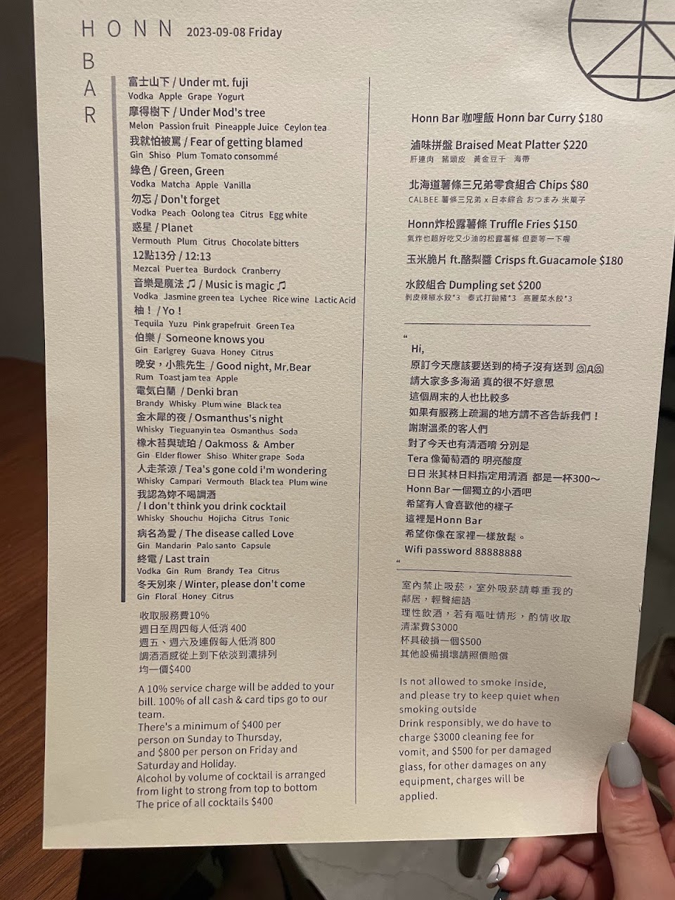 2024最新在地推薦餐廳的菜單_Honn Bar 酒吧的菜單、圖片