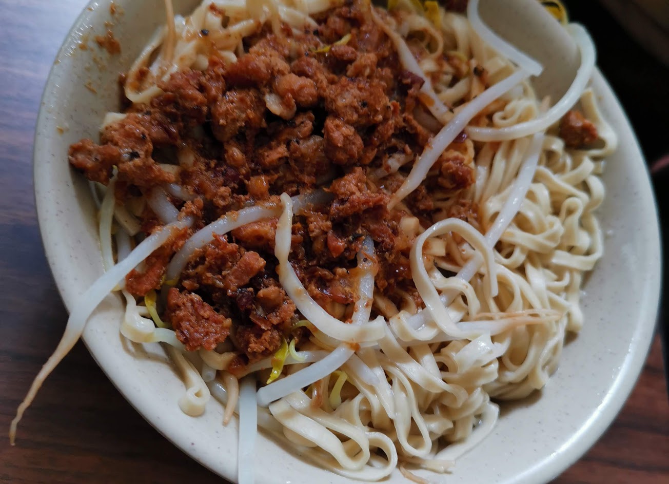 意麵麵體不會煮得太爛,肉燥胡椒味偏重一點,鹹度還算適中,屬於偏北部口味,不像南部肉燥鹹中帶點甜。加點辣油又不一樣,辣油很香,辣椒的辣不會辣到不舒服,還不錯