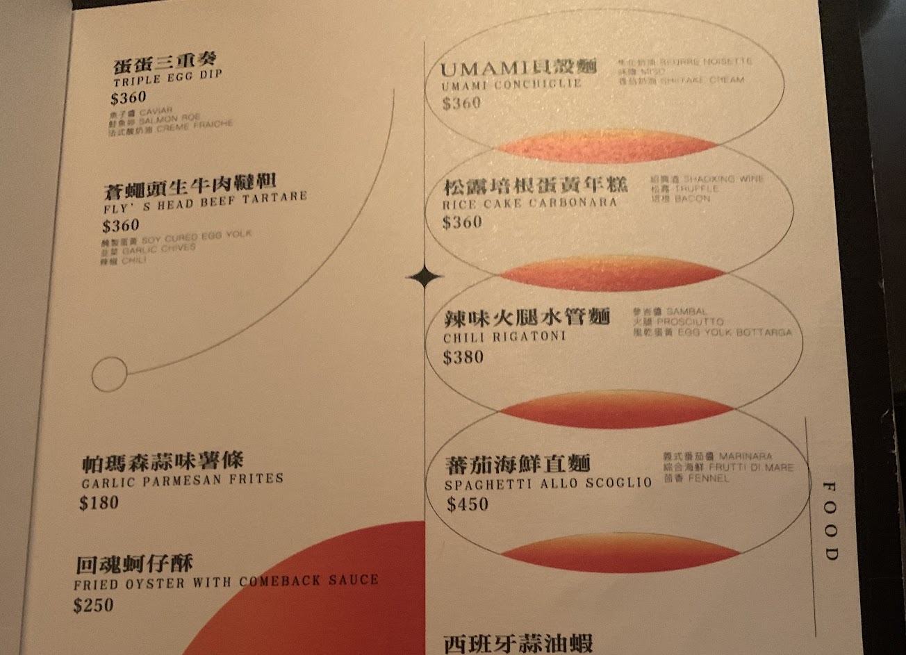 菜單設計的非常漂亮。酒的部分,和朋友點了三杯招牌調酒都蠻不喜歡的,偏網美店。薯條還不錯吃,但單純喝酒的話,一定有更好的選擇。男服務生介紹菜單很隨便,這樣對第一次來的客人實在不太okay。?