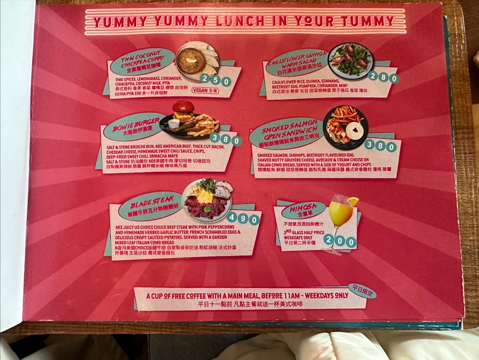 *早午餐體驗 店內氣氛好,服務人員友善 唯餐點份量乍看很多,價位偏高,且飲品須另點 當天英式早午餐中的培根不夠焦,蕃茄焗豆的醬汁偏甜,以及看到工作人員沒有戴手套等防工具直接用手拿麵包,有點可惜! 推薦想試試道地英式早餐以及氣氛的人嚐鮮! 菜單好像有更新,之前找到的都還是$150?