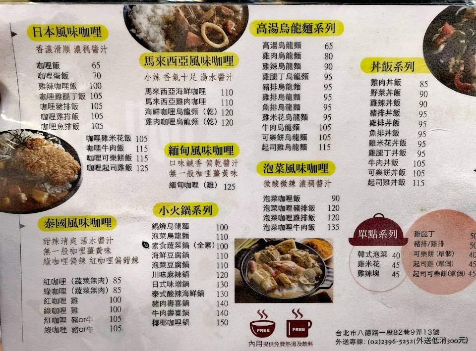 價格實惠,內用還附飲料跟湯。超多種口味的咖哩和小火鍋,真的不怕挑不到自己想吃的。用餐時間人滿多的,不過內用座位也不少,通常不會等太久。
