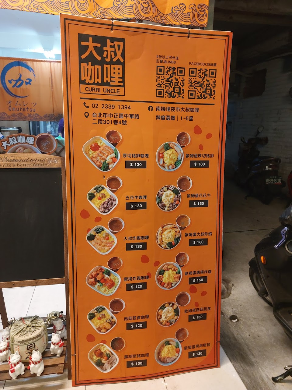 南機場旁一條不太容易引人注意的小巷裡,一間有特色又好吃的咖哩飯。老闆大叔們很平易近人,餐點也很有特色,搭配一塊看起來很營養的紅薯、兩片醬瓜,還有小小點心梅子餅。我和我女兒都很喜歡大叔咖哩的歐姆蛋厚切豬排咖哩飯! 服務 外帶 餐點類型 晚餐 平均每人消費金額 $1-200 餐點:5 服務:5 氣氛:5 建議的餐點 歐姆蛋豬排咖喱
