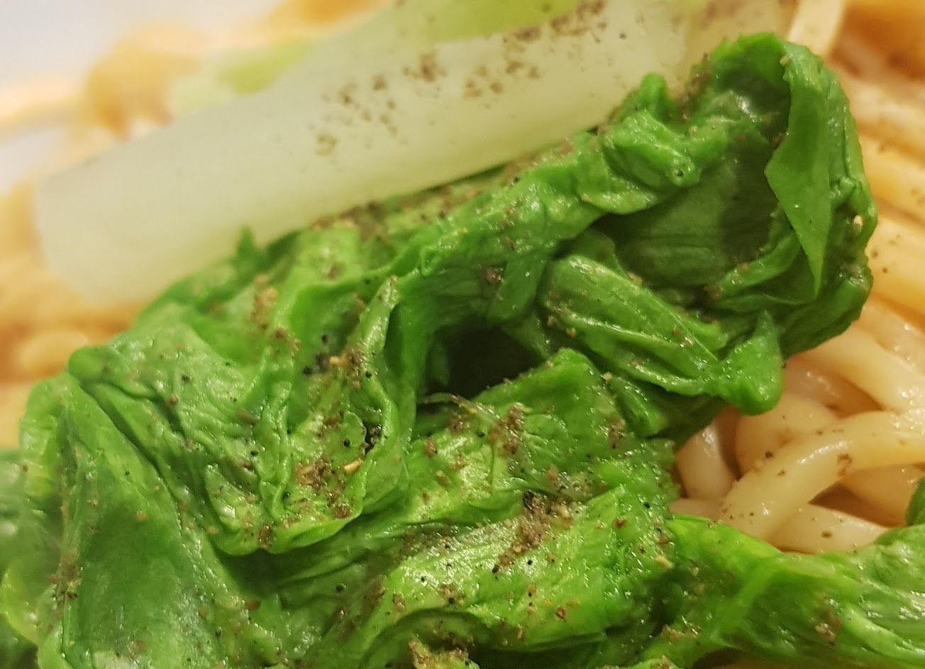 椒麻正宗 嘴唇的麻辣感帶來後韻的甘甜 麵條有日式拉麵的血統,在咀嚼時有種清脆的咬感 雞湯是緩解上午疲憊的清爽 推