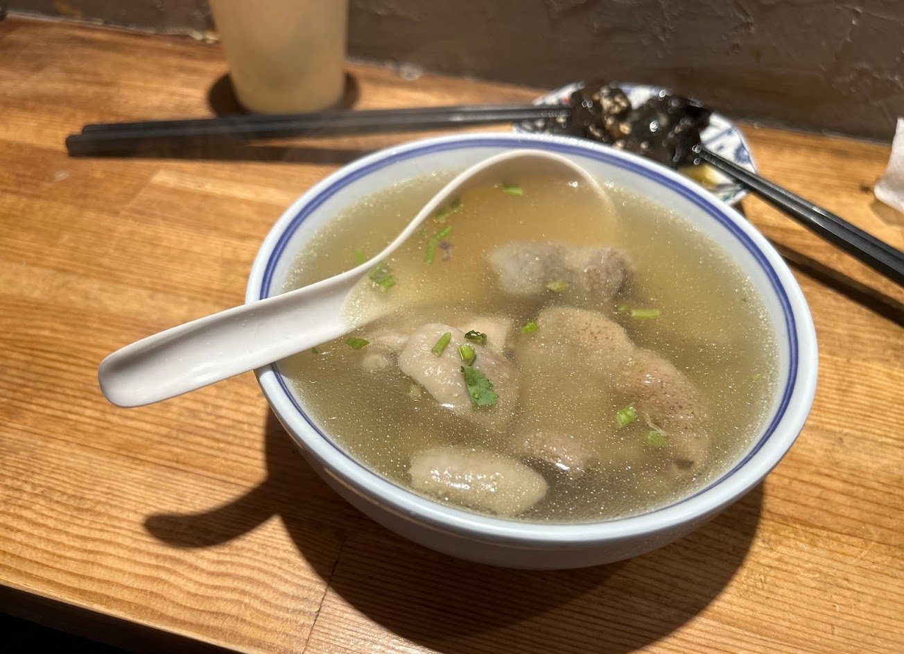 買了他們雞湯 除了傻眼以外還是傻眼 感覺比夜市的還不好吃 然後價格是夜市的2倍但很小碗 一碗湯裡只有一隻小腿⋯ 然後湯的味道很不雞湯