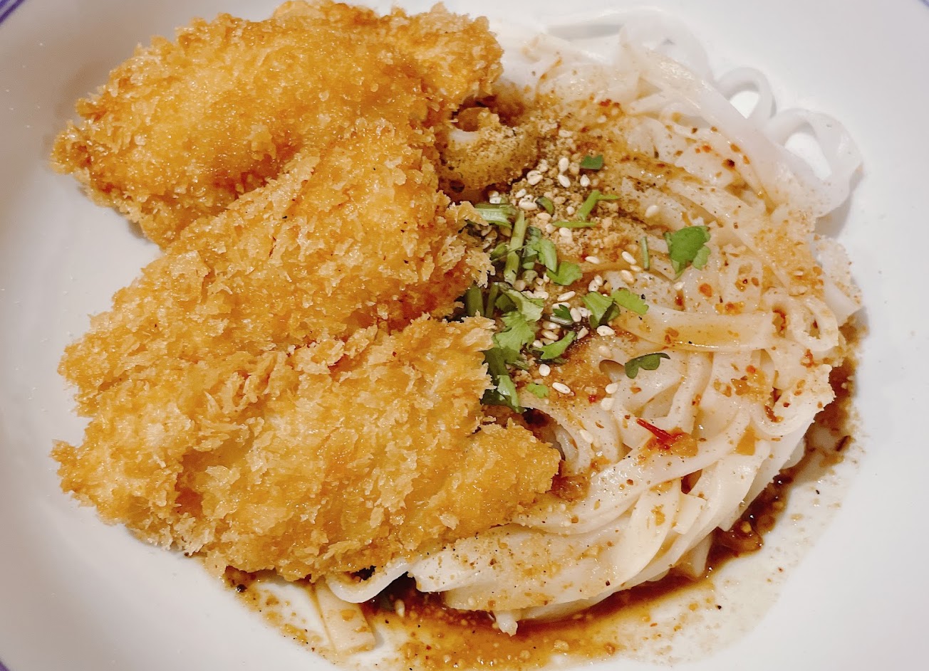 椒麻麵:只有純粹的麵,屬於醋感偏重的椒麻口味,口感非常Q彈,但沒有任何配菜稍嫌單調。