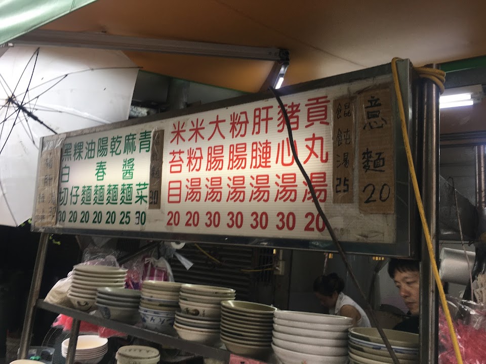米苔目個人覺得是純米做的、不會有Q彈不易咬斷的假米苔目口感、湯頭有放蝦皮所以清甜、黑白切是看老闆想切什麼就給什麼(呵!名副其實的黑白切)、燙青菜也不錯、但沾醬(醬油膏)黑白切的比燙青菜的好吃。