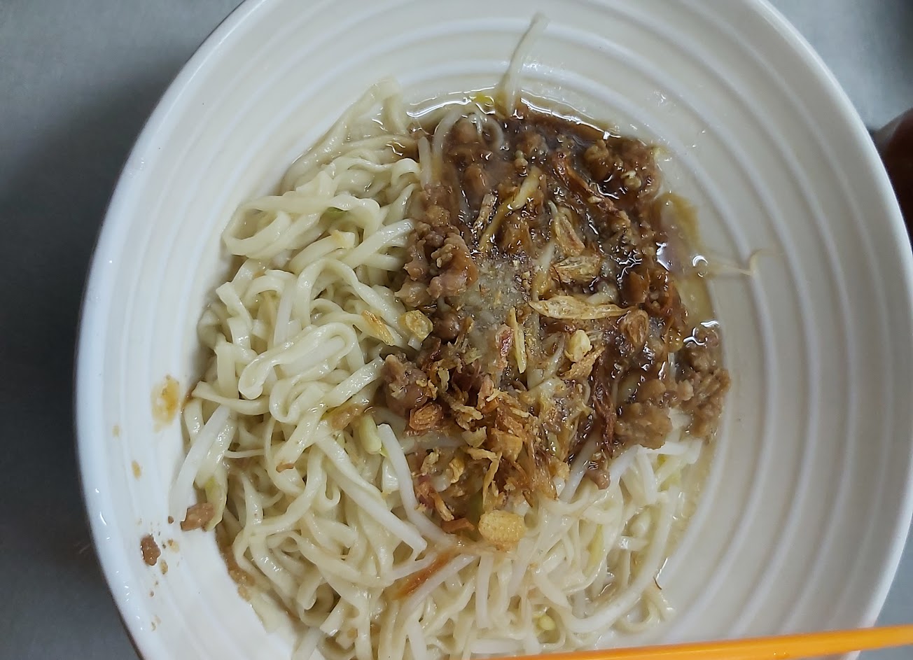 乾麵(20元):一碗麵份量相當多,沒想到豆芽菜、肉燥及紅蔥頭搭配麻醬麵會這麼適合,而且麵條口感軟硬適中,吃起來相當順口呀!麻醬很味道特殊,口感位在甜鹹之間,彷彿去南部麵店走了一圈回來了呢! #用餐時間2021年3月23號凌晨1點整