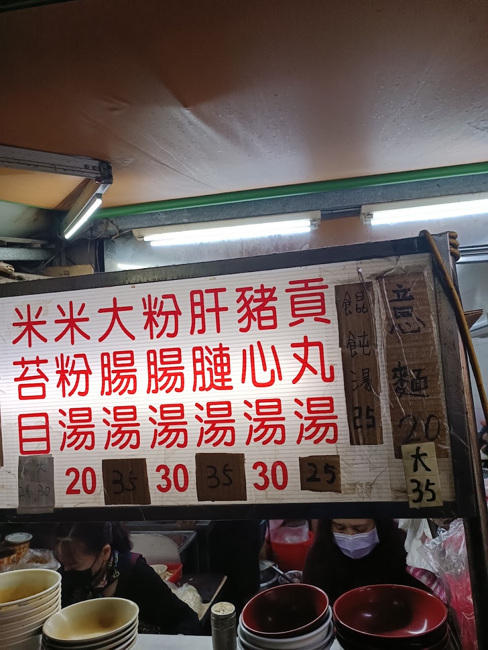 禮拜六晚上七點半來吃 生意非常好 要排隊 不論內用外帶一律排隊點餐 麵類跟小菜類要分開點 東西非常便宜 難怪一堆人來吃 米苔目一碗20元 是我吃過份量最多的?