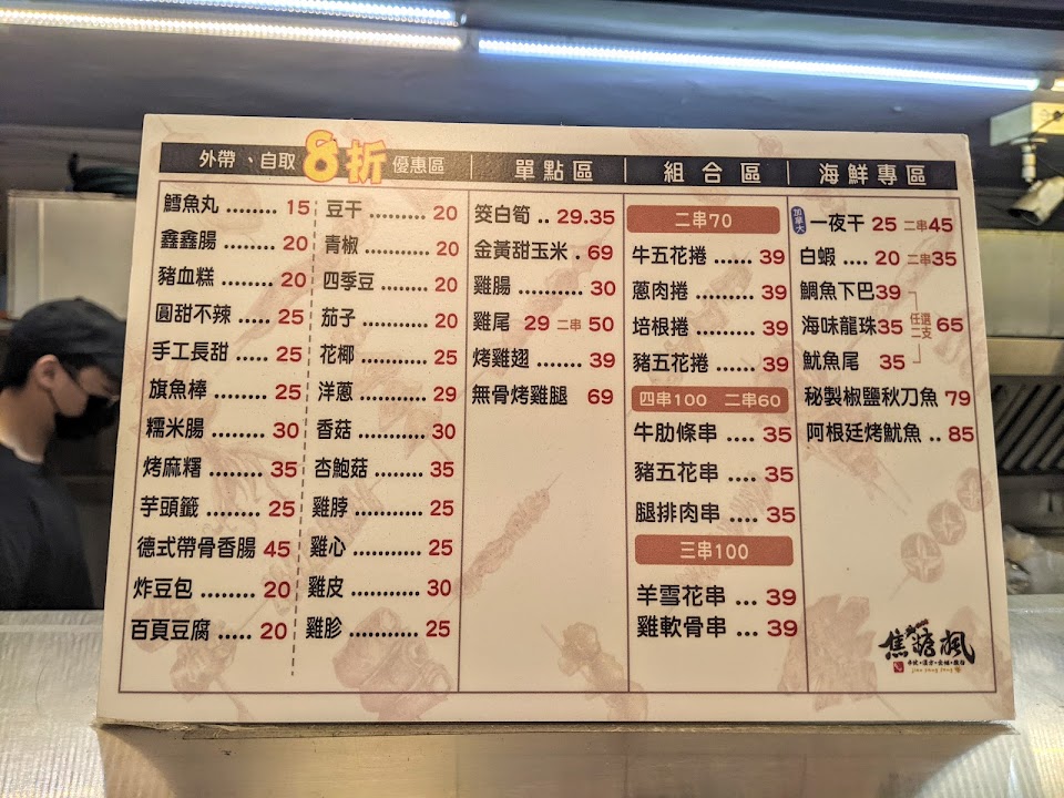 PS: 1、2月2日外帶單號020。 2、我的評論不考慮鹹淡口味的差異(這屬於個人喜好),但是,我們點小辣,來的沒有辣。 3、老婆取餐時沒有人排隊。我想這也不是因為排隊人多,得趕工趕時間所造成品質落差,如果是,那也不應該,我們又沒有催你。 4、我們這次點的品項與上次在永吉店點的大部份一樣,不是同品項沒吃過就亂講你們不好。 5、兩樣勉強接受:魷魚尾(第一次吃,我認為一樣烤不夠,但無從比較)、茄子。 6、我們不是同安街在地人,這次是覺得附近臨停方便所以專程過來買。 7、你們菜單上沒有設定可勾選的”火烤程度”,那就表示各店應該有統一的火候標準,這次就算是第一次吃,以我們的感覺也是明顯火候太不足。 8、3顆星我給你真的給的很客氣,老婆愛吃玉米,這次她玉米吃兩口,真的就兩口,整根丟給我善後。