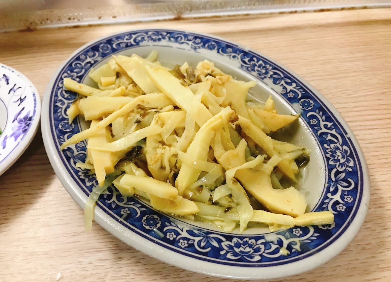 滷肉飯是濕的不油感覺是肉汁很多,不太喜歡這種口感的滷肉飯,可以油一點會更好吃而且醬油味蠻重偏鹹,上面的醃佛手瓜也是鹹的沒有特點,筍絲沒有甜味,不是我喜歡的筍絲味道。