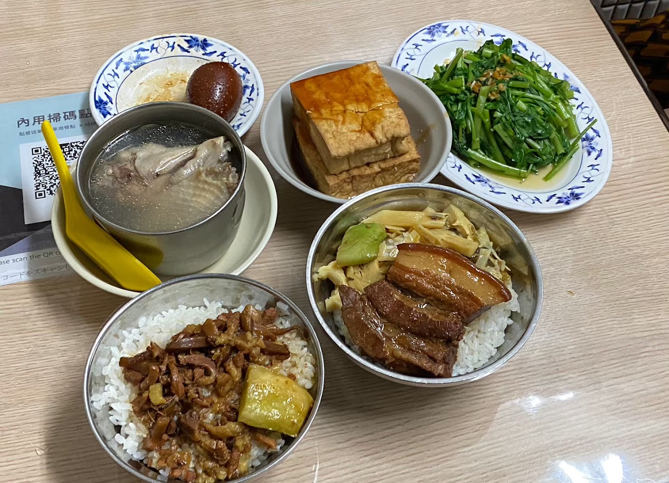 各項食物表現都不錯,不怕踩雷,且供應台北少見的豬腦(頭髓)湯。魯肉飯分小中大碗,皆附醬瓜。