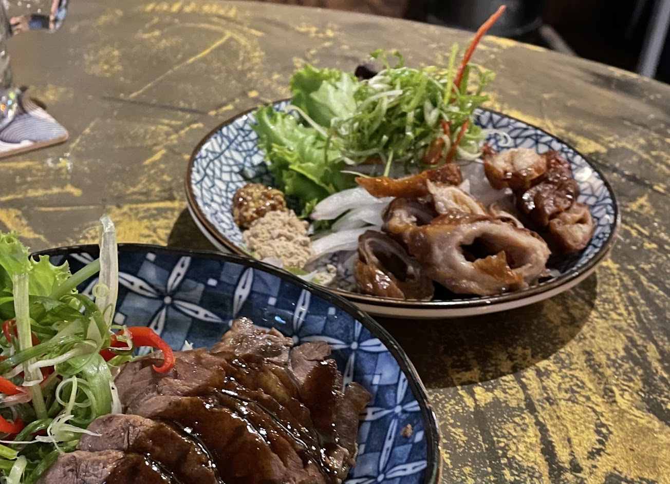 餐點比酒類優秀的餐酒館 渣男烏梅醉 有一朵大大的洛神花裝飾,酒體本身味道複雜,沒有烏梅的主體,酒精味也很分離,隨著冰塊融水一多,整個風味解體 這個我可以 說是以茶酒下去調製的茶酒fizz,但是真的喝不到茶味,就只是一般的水果調酒,連fizz 的刺激感都沒有 滷牛筋:份量還可以,品質也有一定的中規中矩 下酒菜拼盤:粉肝的部分有一個臭酸的味道,自己不是太習慣,但酒精下去應該味蕾都可以忽略那個味道。 份量不多,有點偏貴 涼拌洋蔥:拜託千萬別點涼拌洋蔥,每道下酒菜下面鋪的都是洋蔥,收集起來可以湊出兩份涼拌洋蔥 麻辣烏龍面:麵體好吃,麻辣適中,請務必趁熱吃 乾拌烏龍面:醬料很香,氣味誘人,但肉類跟麻辣烏龍比起來少很多