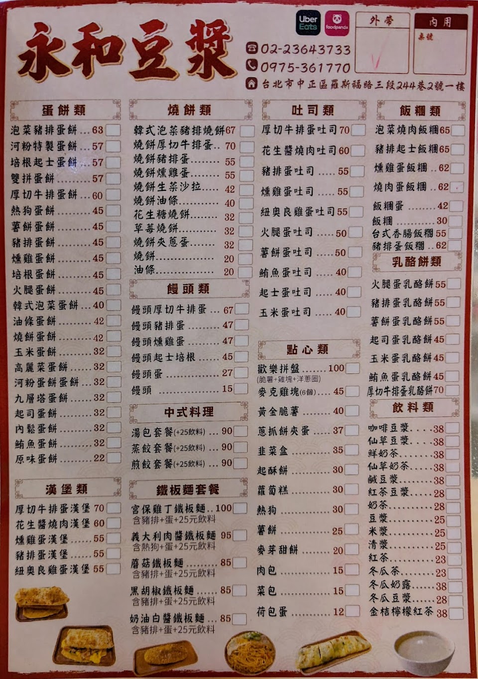 2024最新在地推薦餐廳的菜單_永和豆漿(台大公館店)的菜單、圖片