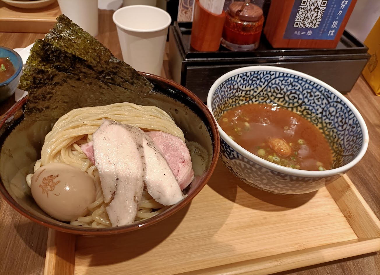 當日抽號碼牌時前面有七位,然而不用十分鐘就輪到我們入場了。我點了一份濃厚魚介沾麵,表現算是不錯,但吃到後面仍然會有過鹹跟過膩的情況,還好最後有附一小球冰淇淋來當收尾。