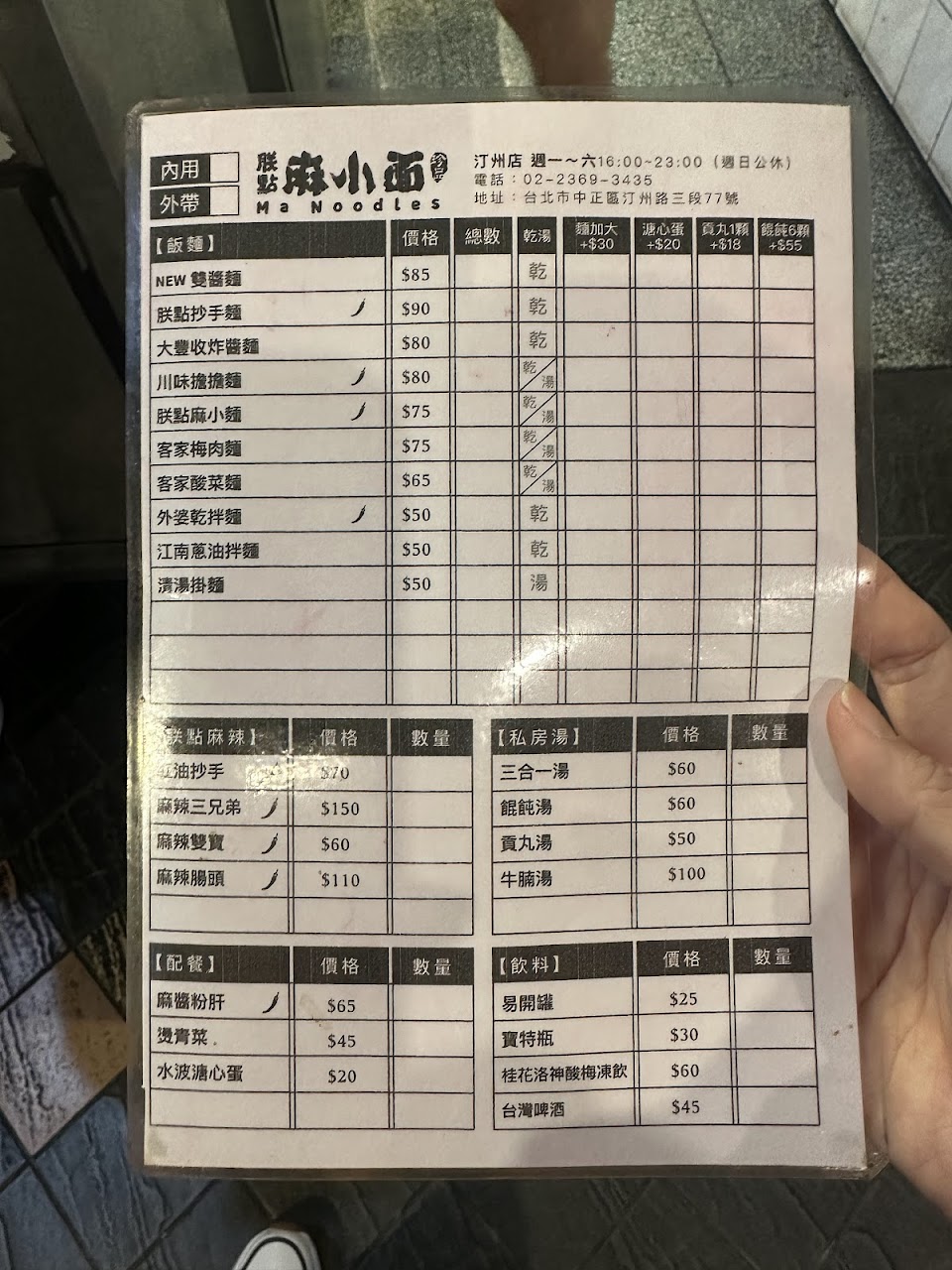 這次內用麻小面及店口自選的麻辣(?)小菜