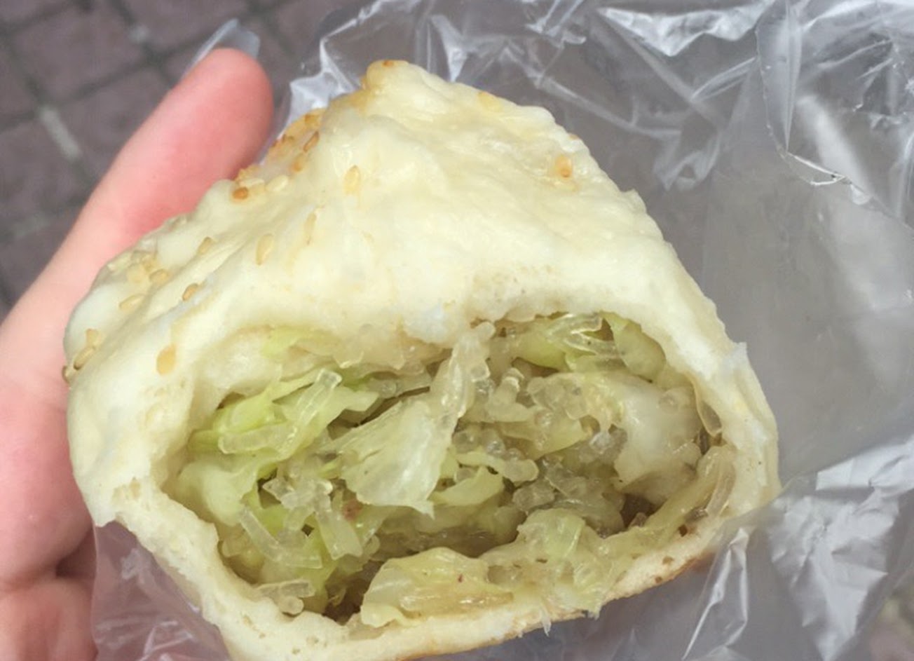 白菜包子裡面塞滿了白菜和粉絲 微鹹,白菜的甜味也很好吃。
