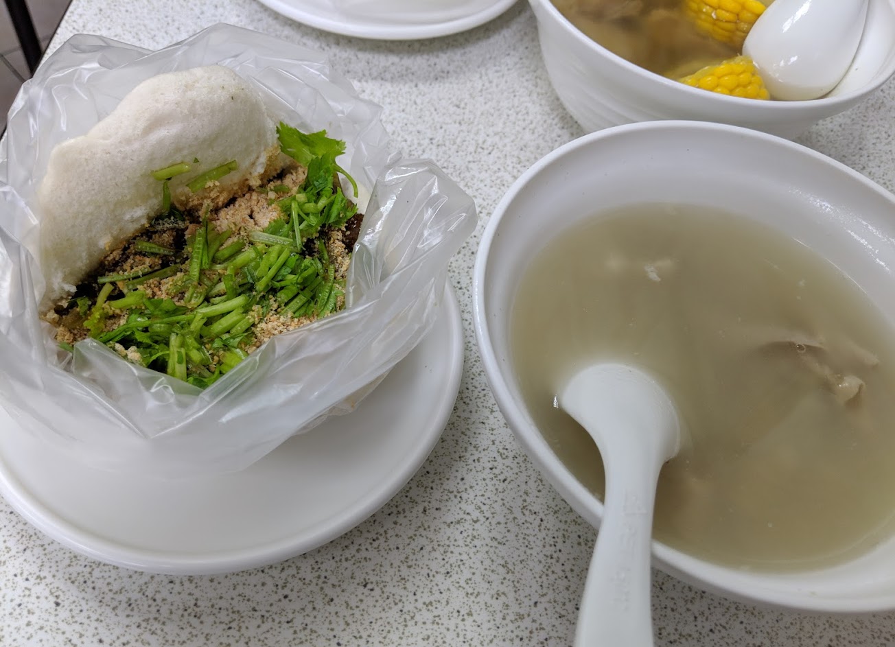 吃了割包、肉粽跟玉米排骨湯。 三樣都不錯,割包的部分真的滿好吃的,花生粉香菜都給得很多,每一口都可以吃到餡料真的很棒。 肉粽也是不錯吃,也不會太軟爛,餡料也很多米飯q彈。 玉米排骨湯的話真的很推!湯頭超輕甜好喝,玉米跟排骨也是不錯,現在又想喝了,可惜價格有稍微高一點。