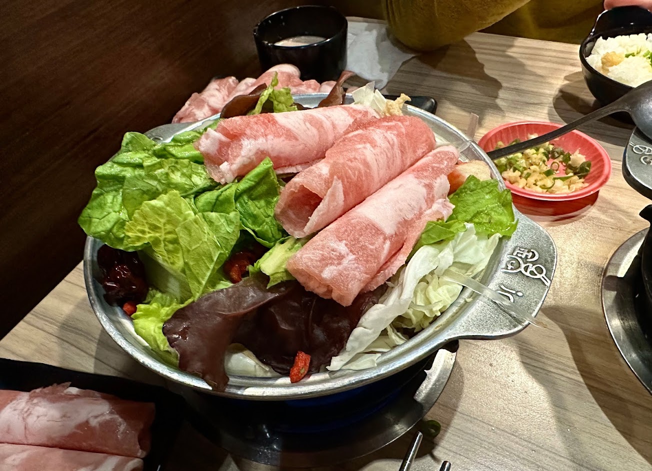 位於汀州路靠近師大分部的位置,機車位不容易找,排隊人潮很多。室內寬敞位置多,但還是可能要候位。一鍋差不多一百五左右,升級的話兩百多,很適合學生的價位。店內提供冰淇淋、霜淇淋、飲料。